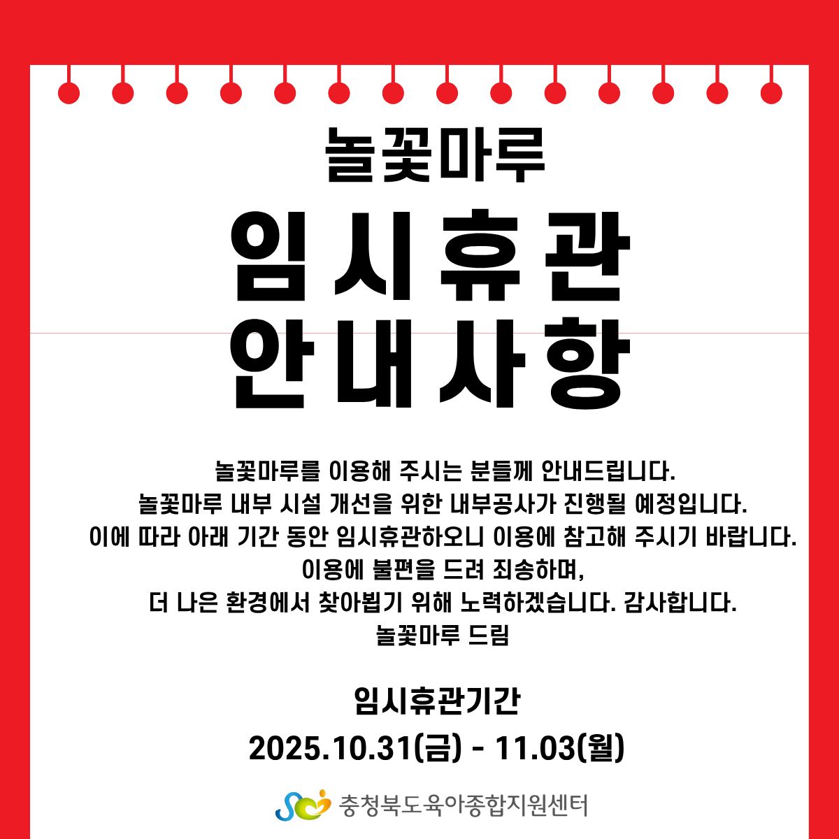 충청북도 육아종합지원센터가 함께 만들어가겠습니다.
